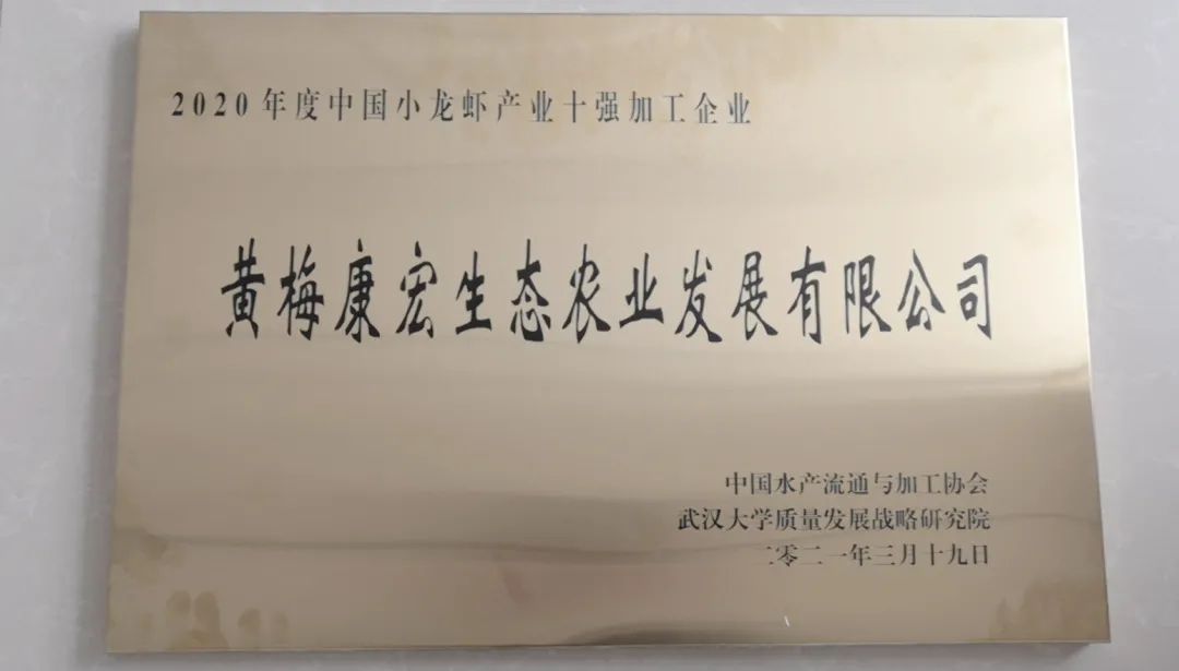 会上,湖北省粮油集团旗下黄梅康宏生态农业发展有限公司获评2020年度中国小龙虾产业十强加工企业。