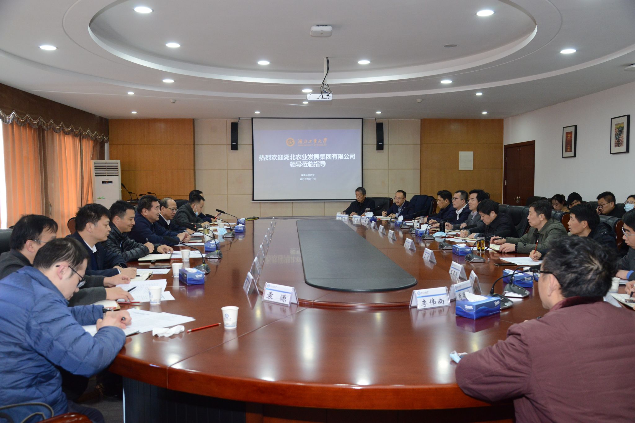 2月17日,湖北农业发展集团有限公司党委书记、董事长朱万奎,党委副书记、总经理陈华志等湖北工业大学调研,并与湖北工业大学党委书记刘德富、纪委书记秦防修、副校长宋小春座谈交流。