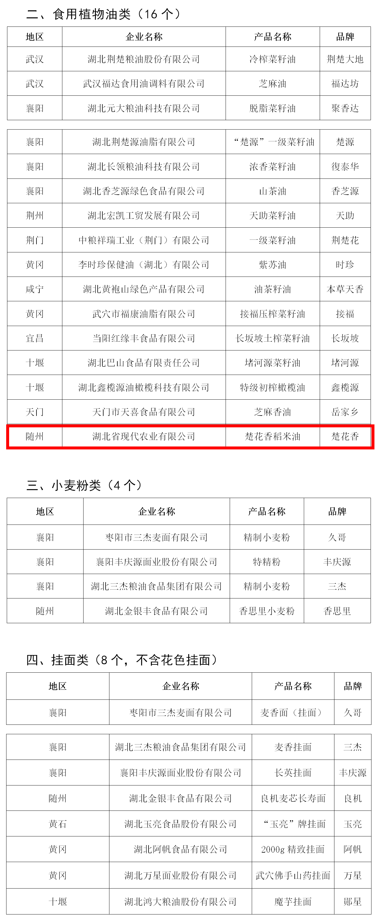 日前,由省粮食局指导,湖北省粮食行业协会具体组织的2020年度“荆楚好粮油”评选结果出炉,86个产品“榜上有名”(后附产品名单)。其中,湖北省粮油集团旗下湖北省现代农业有限公司楚花香稻米油、湖北康宏粮油食品有限公司二度梅系列佛缘米、虾田稻、汕小粘、黄花粘名列其中。