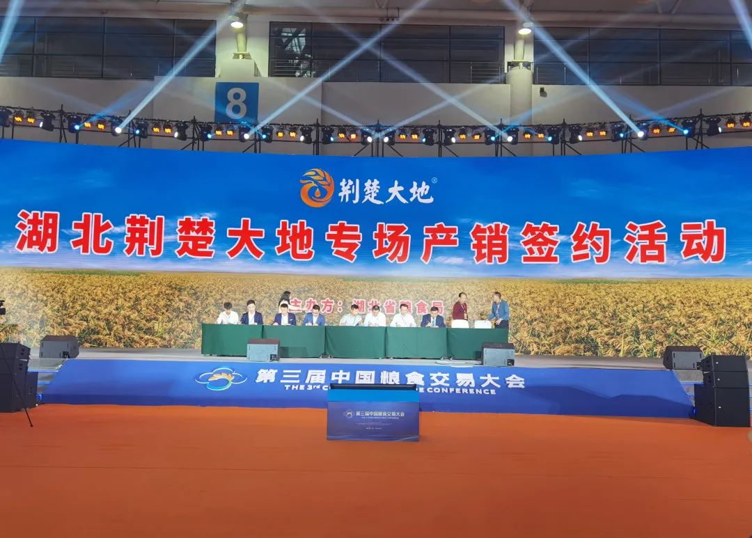 展会期间,省粮食局在福州海峡国际会展中心举办湖北荆楚大地专场产销签约活动,国家粮食和物资储备局副局长贾骞、省政协副主席王红玲分别致辞。会上,湖北省粮油集团与武汉轻工大学签订校企产学研合作协议,集团党委副书记、副总经理纪道斌代表集团签约。