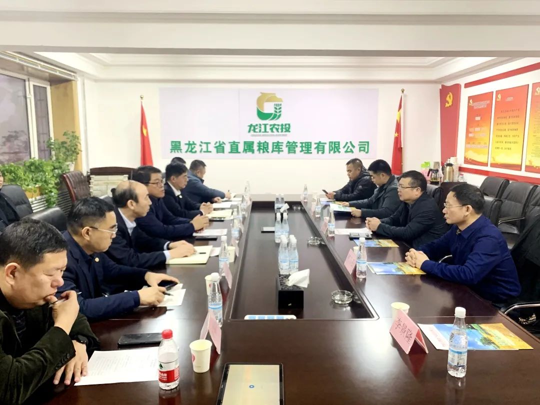 12月11日,万卫东一行拜会黑龙江农业投资集团党委副书记郝雪岩,党委委员、总会计师兼黑龙江粮食产业集团党委书记、董事长魏成林,黑龙江粮食产业集团副董事长、总经理刘黎明一行并座谈。双方进行了深入友好交流,详细介绍了企业改革发展情况,探讨分析了当前业务合作进展和成效,就深化拓展业务合作领域达成共识。黑龙江粮食产业集团总会计师祖义及贸易部、直属粮库、金谷源粮油交易公司、金谷粮食集团负责人参加座谈。