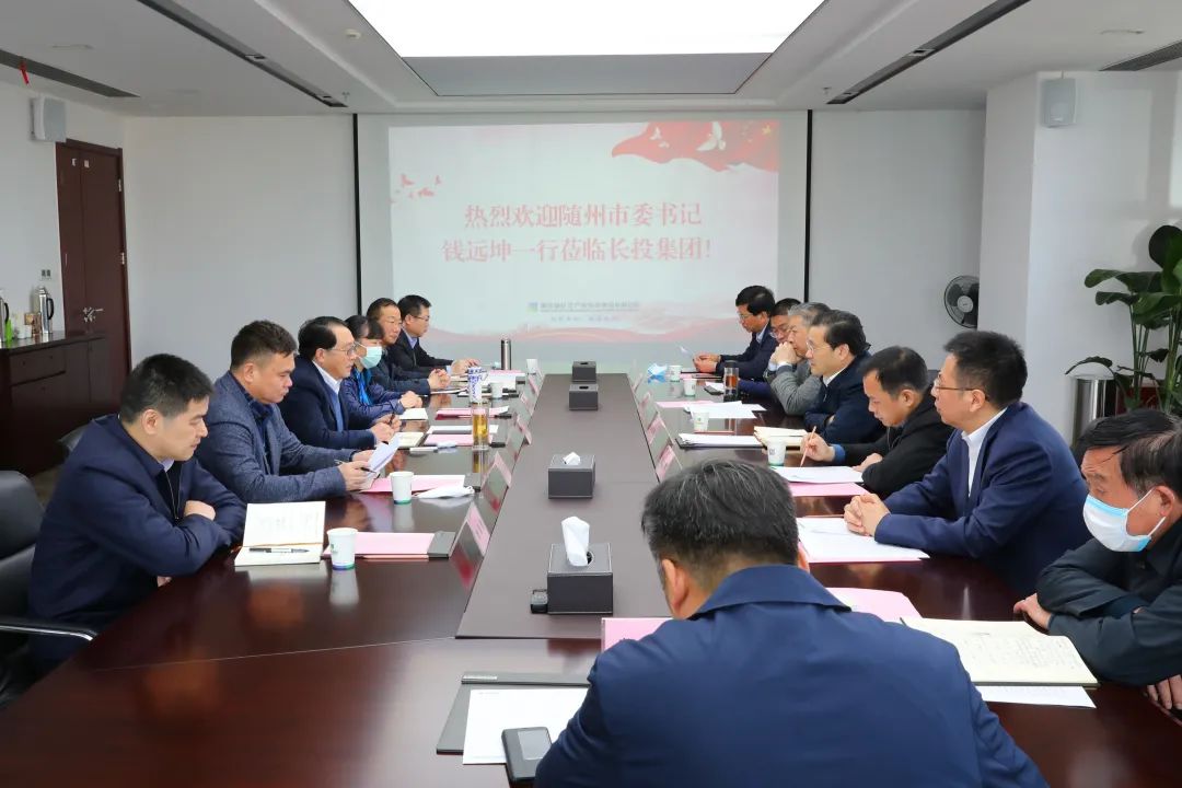 何大春对钱远坤一行的到来表示热烈欢迎,并详细介绍了长投集团基本情况和近年来企业聚焦主业、转型发展情况。长投集团是湖北省委、省政府服务长江经济带建设综合投融资平台,是湖北长江经济带生态保护和绿色发展的省级投融资主体。近年来集团认真贯彻习近平总书记生态文明思想,紧扣功能定位,紧盯重大战略,聚焦“生态产业投资、绿色城镇建设”主业,积极培育以生态建设为主,制造业、类金融、房地产协同发展的四大业务板块,努力构建“金木水火土”五行生态产业链,大力开展绿色矿山、生态储备林、水环境治理、固废危废处理、国土空间整治、河道疏浚及废弃砂利用等生态项目建设,系统推进长江大保护、乡村振兴、全域国土综合整治、新型城镇化建设等重大战略实施落地,在省属国企率先扛起“生态优先、绿色发展”旗帜。何大春表示,随州资源得天独厚,产业特色鲜明,机遇前所未有,长投集团将充分发挥平台优势,深入参与随州经济社会发展,立足在建项目,进一步拓展绿色矿山、现代农业、国土空间整治、生态环境治理、新能源等多领域合作,助力乡村振兴,为随州高质量发展作出新的更大贡献。