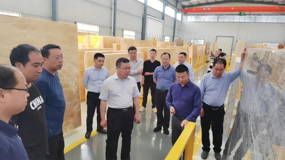 万卫东一行赴郧阳区谭山镇实地考察了矿山开采现场,参观了湖北利洋石材有限公司车间和展品展厅,详细了制作工艺、产品品质、销售渠道、市场行情和企业未来发展方向,并与企业负责人进行了深入沟通交流。