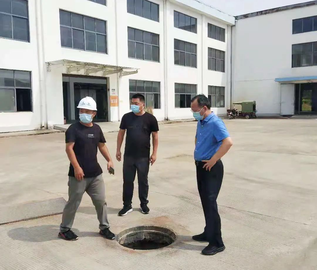王林奎、廖双文查看厂区排水设施